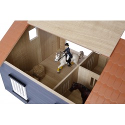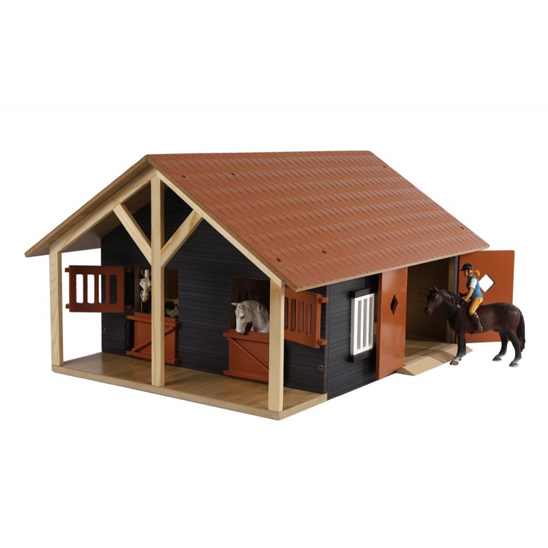 Idéal pour les figurines SCHLEICH. Vos enfants auront beaucoup de plaisir à jouer avec les chevaux dans ces écuries très détaillées et réalistes avec un atelier. Mesurant 51 x 40,5 x 27,5 cm (l x P x H), cette écurie est répliquée à une échelle de 1:24 et conçue avec 2 boxes pour chevaux et un atelier. Ce modèle convient aux enfants de 3 ans et plus. Veuillez noter que les accessoires ne sont pas inclus dans la livraison. Couleur : marron et noir. Matériau : bois.